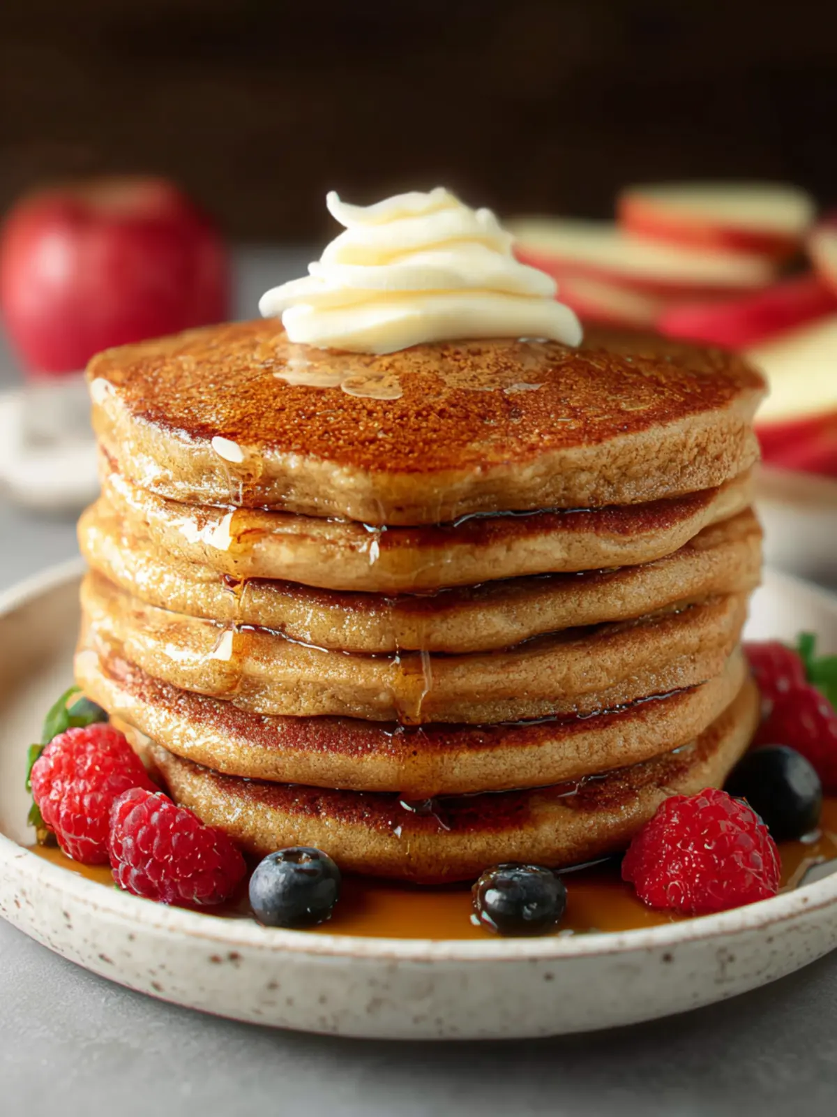 Slice up some fresh bananas or strawberries to add a burst of color and flavor. The natural sweetness of the fruit complements the subtle apple notes in the pancakes beautifully. You might even consider a warm berry compote for a more indulgent touch.