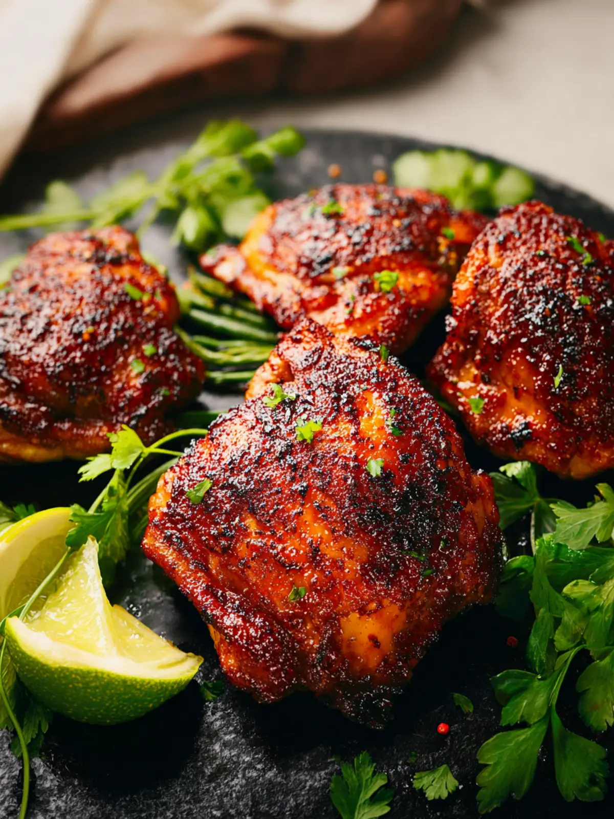 Delicious and flavorful oven-baked chicken thighs seasoned to perfection.