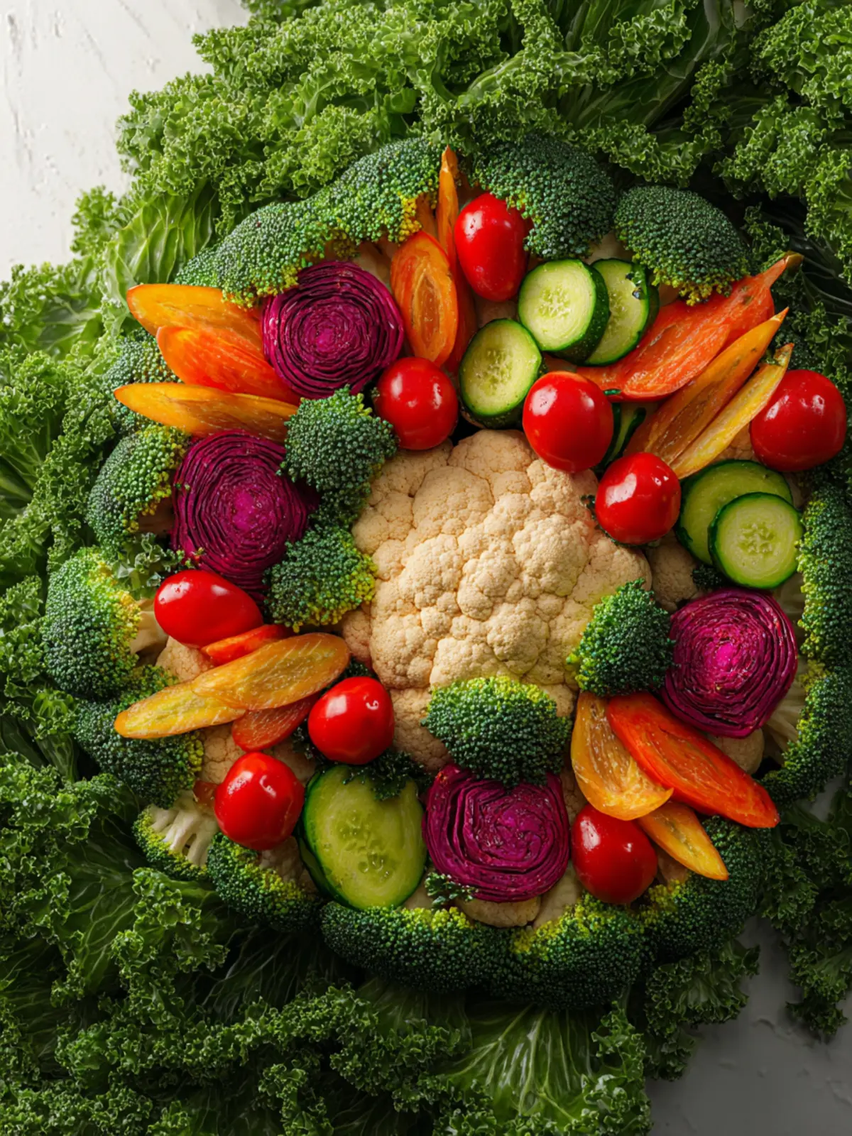 To give the appearance of a wreath, leafy greens such as kale or spinach work beautifully. They provide a lush backdrop that accentuates the colorful veggies, allowing your Christmas Wreath Vegetable Tray to truly shine.