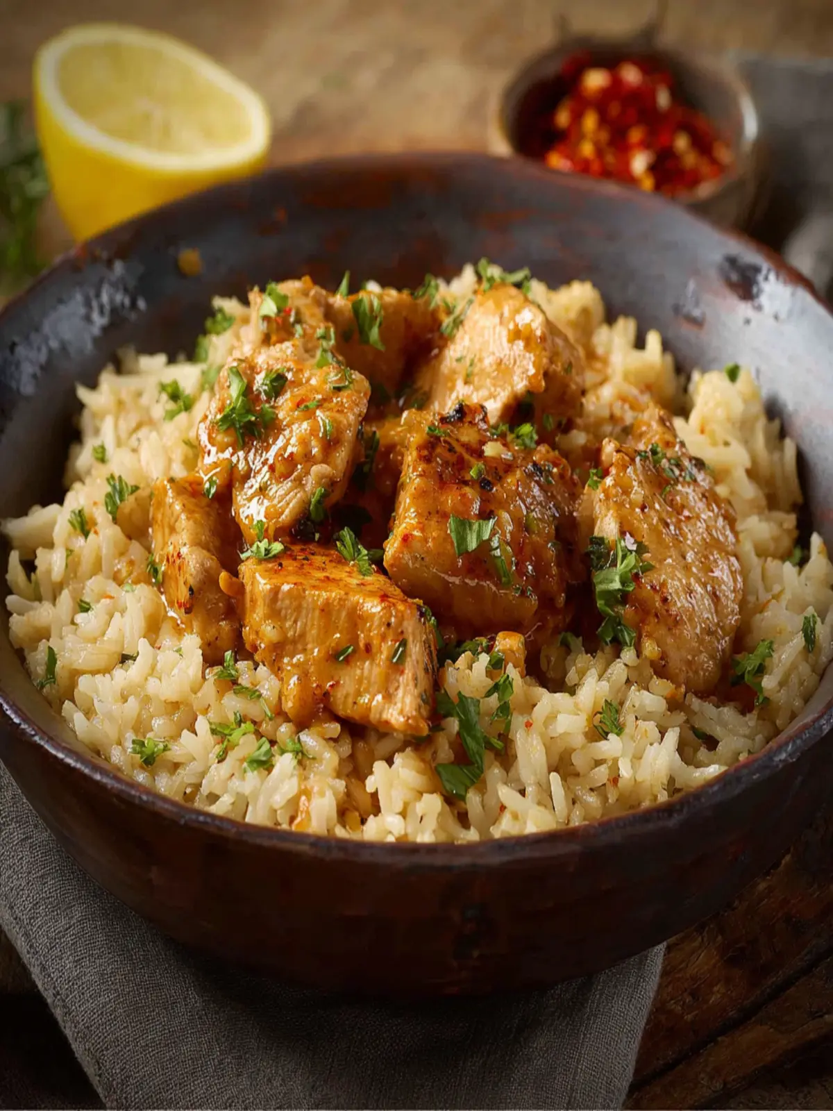 For a fluffy rice base, rinse your rice thoroughly to wash away extra starch, which can make it gummy. Cooking it in a mix of chicken broth and water not only adds depth to the flavor but also complements the buttery sauce perfectly.