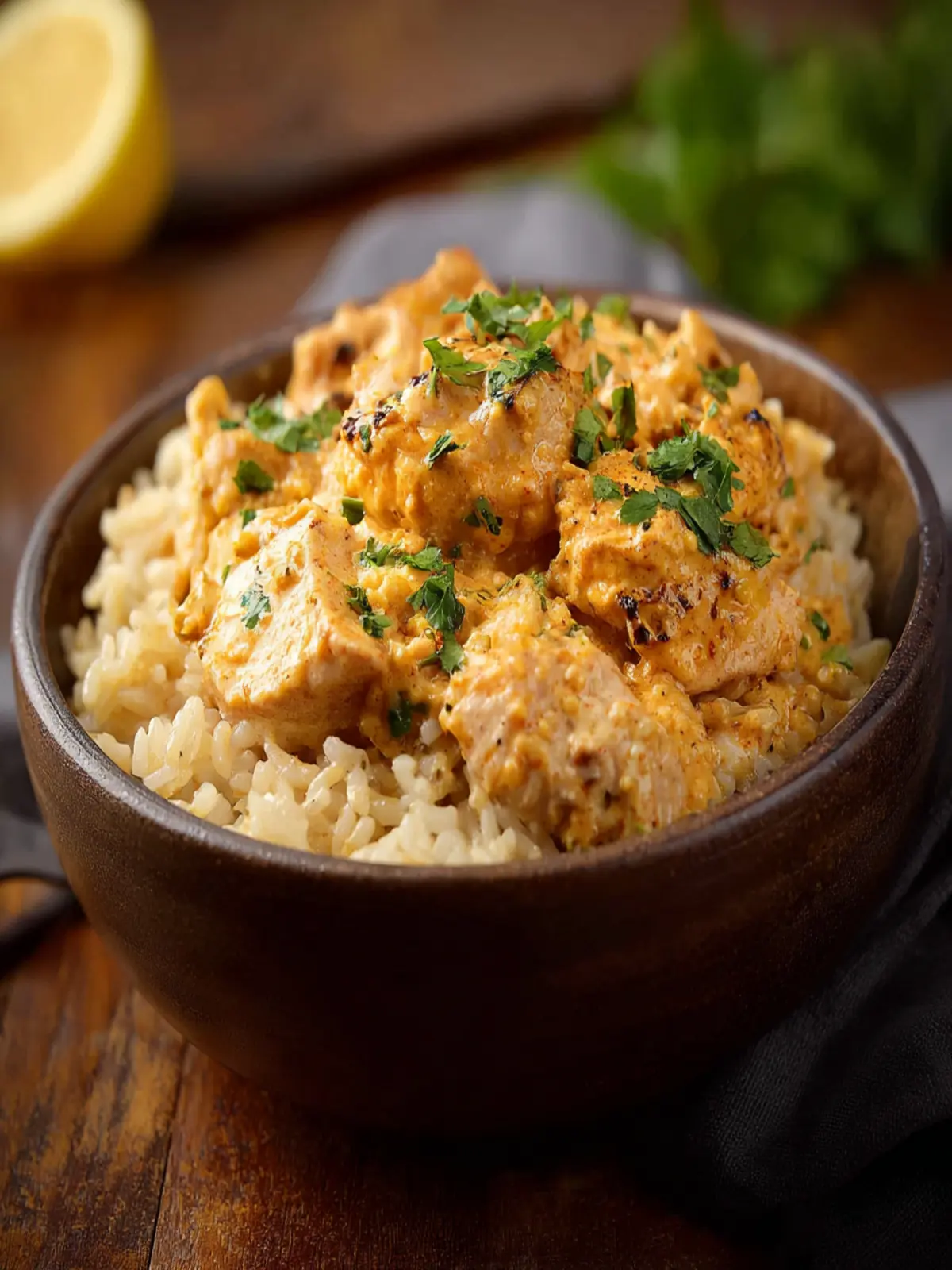What sets this dish apart is its fusion of robust spices and creamy texture. The chicken is infused with a buttery marinade, a touch of smoky paprika, and a hint of zest that dances on your palate. Coupled with fluffy rice, each forkful offers a delightful contrast that keeps you coming back for more.