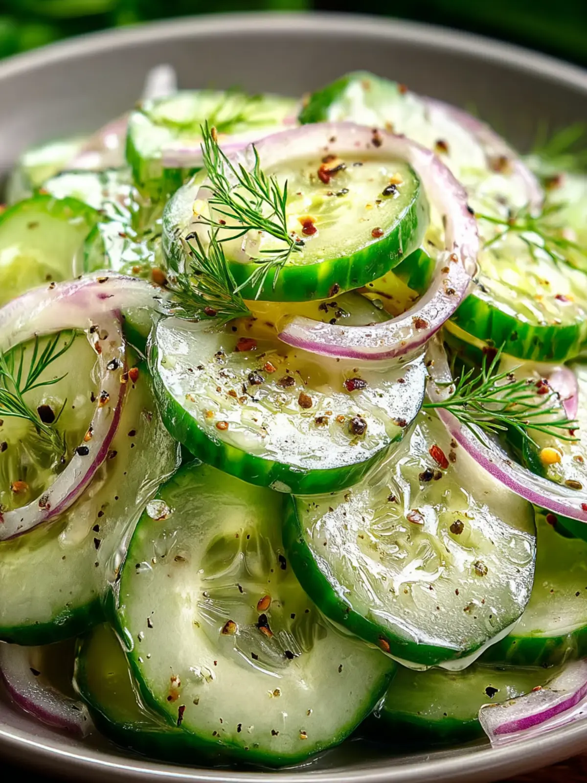 - Pour the dressing over the cucumbers and toss gently to coat.