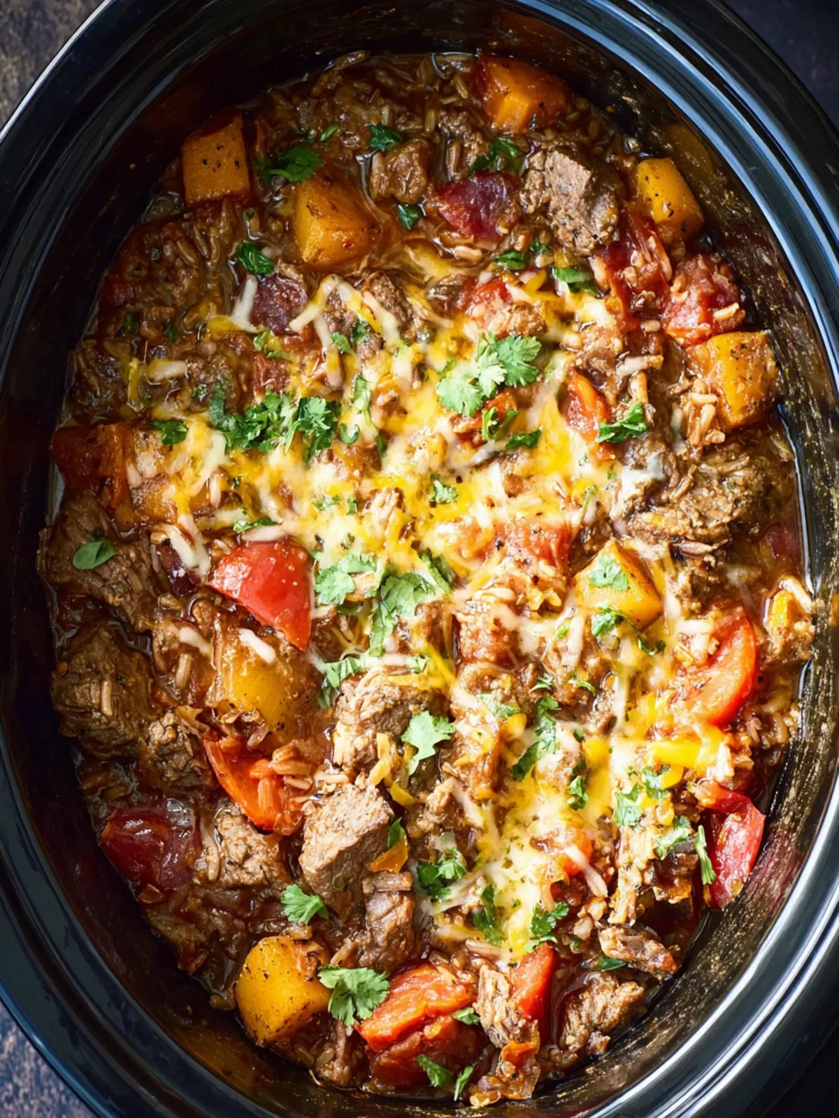 A hearty and delicious slow cooker beef and vegetable casserole perfect for a comforting meal.