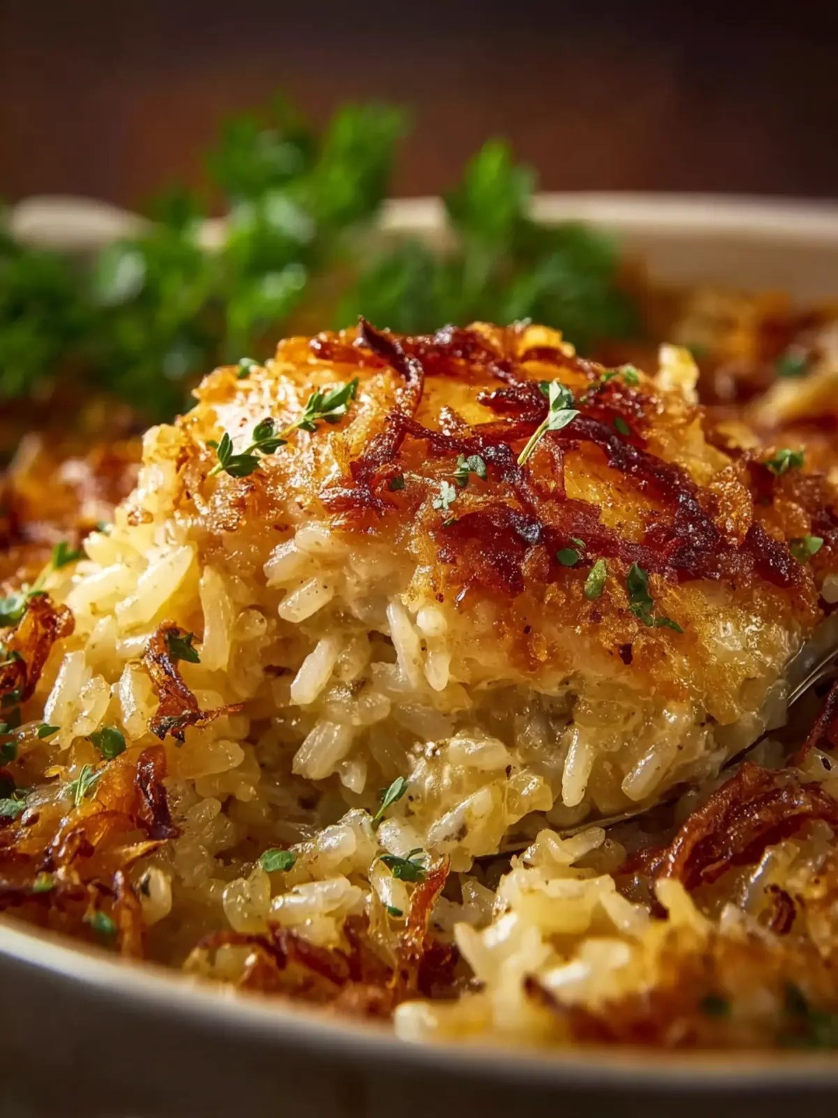 French Onion Chicken Rice Bake: Comforting & Indulgent Delight