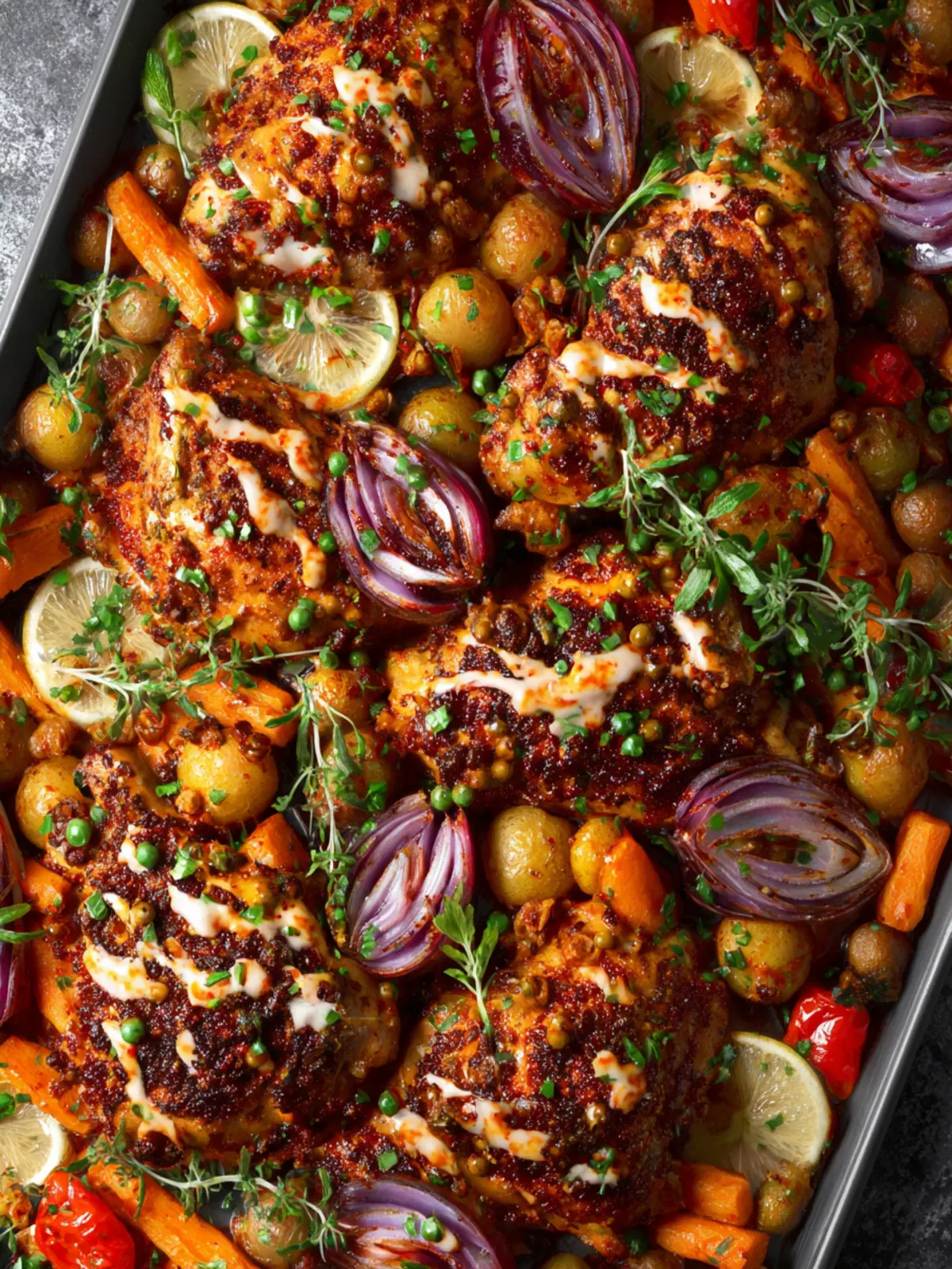 • Versatility: This dish is endlessly adaptable. You can easily switch up the vegetables, swap the chicken for your protein of choice, or even use harissa on fish or tofu.