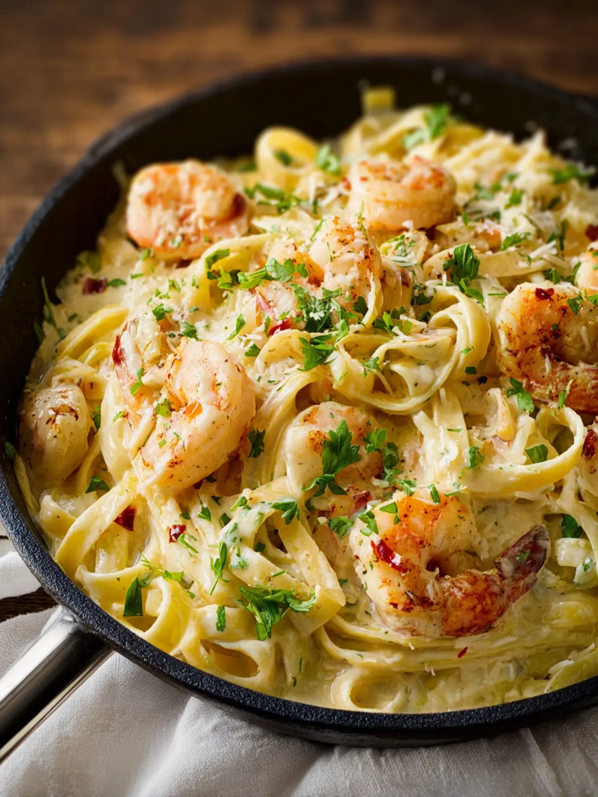 Cook the shrimp until they’re just pink and opaque—usually around 2-3 minutes per side. Overcooking can make them tough. Toss the cooked pasta into the sauce immediately for the best texture.