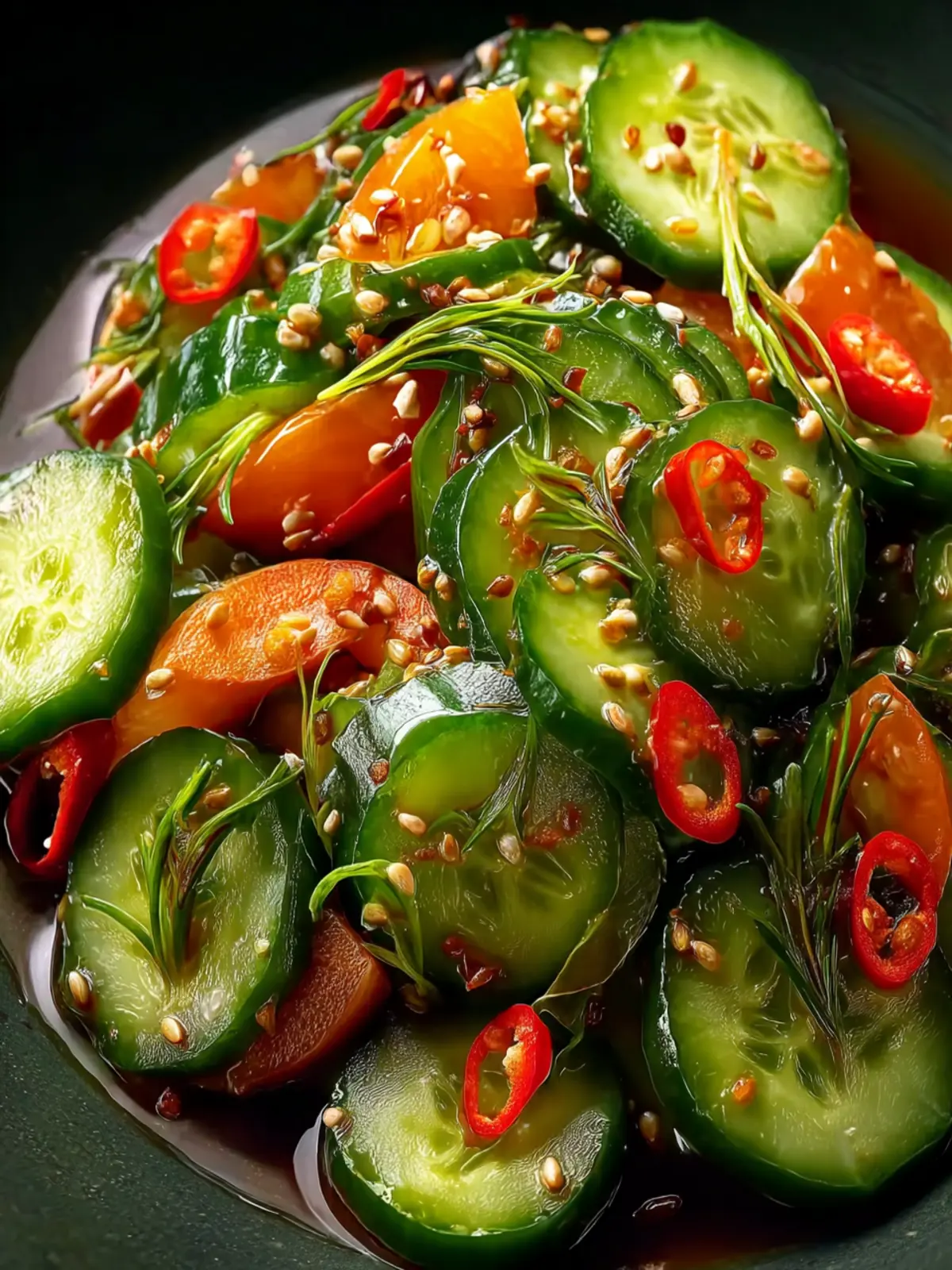 This spicy cucumber salad is a crowd-pleaser, especially during hot summer days. The cold, refreshing cucumbers are a hydrating treat, making them feel light and invigorating. Pair it with grilled meats, tacos, or even a simple sandwich, and you elevate your meal instantly!